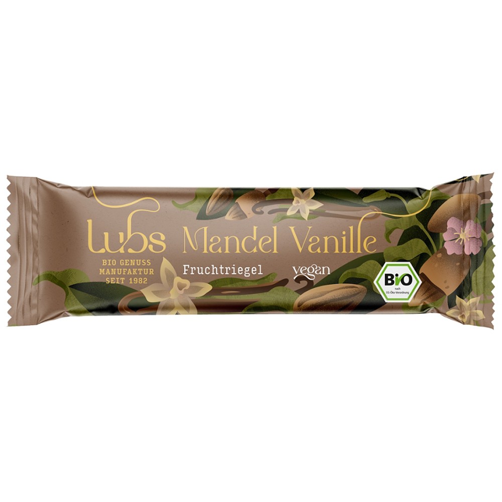 Lubs, baton bio cu migdale si vanilie FARA GLUTEN este ub delicios baton de fructe fara gluten, cu curmale, smochine, migdale, alune, vanilie si altele. Ideal pentru deplasare si pentru o gustare intr-o scurta pauza