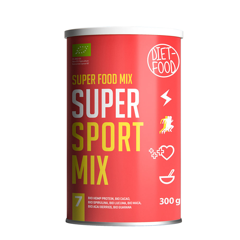 Caracteristici: produs bio, pulberi organice, shake vegan, Gramaj: 300g Descriere produs: SUPER SPORT MIX un amestec atent selectat de 7 ingrediente, care va ajuta in performanta sportiva. Spre deosebire de alte suplimente SPORT SUPER MIX este un produs 100% natural si organic , fara aditivi sub forma de coloranti, materiale de umplutura, de reglementare, conservanti si alte substante nesanatoase. In schimb va puteti bucura de ingrediente naturale care va vor furniza vitamine si minerale. Proteina de canepa si semintele de canepa din “Super Sport MIX” sunt o alternativa excelent pentru sportivii care doresc surse de proteine vegane. Acai sunt o sursa abundenta de vitamine, Omega 3 acizi grasi si calciu. Pulberile de maca si cacao contin o cantitate mare de antioxidanti care ajuta la regenerarea rapida post-antrenament. Guaranina – o componenta din guarana stimuleaza creierul si corpul pentru un efort mai puternic si mai eficient decat cafeina din cafea. Lucuma este o surs de fier, un element necesar pentru a transporta oxigenul de la plamani la toate celulele corpului. Spirulina imbunatateste sistemul imunitar si are proprietati anti-inflamatorii, fiind deasemenea foarte bogata in proteine. Ingrediente: proteine de canepa*, maca*, spirulina*, guarana*, lucuma*, acai fructe de padure*, cacao* * ingrediente provenite din Agricultura Organica Toate produsele incluse în SUPER SPORT MIX sunt certificate organic . Origine: non UE Certificare: PL-03-003282 Utilizare: se amestec 1 lingurita de amestec super sport cu lapte, iaurt sau suc, se poate adauga la cereale, deserturi si salate. Pentru a va imbunatati in mod eficient starea de bine consumati cel putin 1 lingura de SUPER SPORT MIX pe zi. Acest pachet asigura consumul pentru aproximativ 1.5 luni . Conditii de pastrare si consum: a se pastra intr-un loc uscat si racoros, departe de lumina. Dupa utilizare inchideti si pastrati la loc uscat. Diet Food este o companie specializata in produse bio dietetice fara carbohidrati, fara gluten din konjac si din soia si produse bio de tip superfood si superalimente: pulberi organice si amestecuri de pulberi organice speciale pentru detoxifiere, slabire, sportivi, energie zilnica. Continut de minerale si vitamine: magneziu 164.4mg clorofila 170mg fier 14.1mg potasiu 856mg mangan 1.13mg fosfor 560mg zinc 2.7mg seleniu 3.67mcg Vitamina A 10mg Vitamina C 1.13mg Vitamina B1 0.6mg Vitamina B2 1.3mg Vitamina B3 12.3mg Vitamina B6 0.76mg Vitamina B12 5.25mg Vitamina E 0.6mg Vitamina K 11.4mg