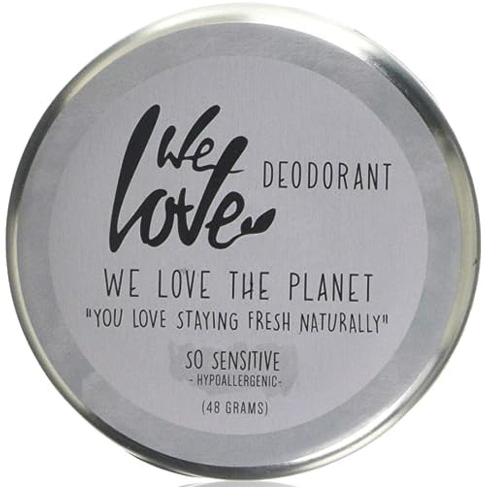 Ingredientele naturale din acest deodorant calmeaza si hidrateaza pielea.Crema se absoarbe rapid în piele si nu blocheaza porii pielii. Produsul este certificat conform criterilor pentru cosmetice naturale. Toate deodorantele de la We love the planet sunt obtinute dintr-o combinatie din ceara de albine, ulei de cocos si pudra de amidon de porumb. Se aplica usor si lasa pielea delicat de moale. Prenzenta natronului permite neutralizarea mirosurilor neplacute.