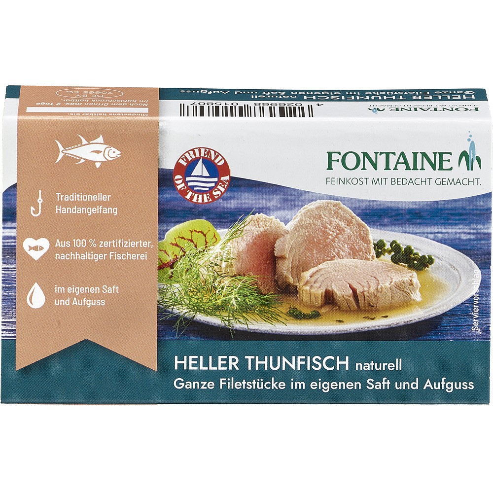 Tonul din suc propriu are mult mai putine grasimi decât tonul din ulei vegetal. Nu e de mirare ca, în special, cunoscatorii de peste, iubesc în mod natural tonul nostru usor. Dar aceasta nu este totul: el completeaza ingredientele de baza bogate într-un mod ideal. Ce zici de un sos de smântâna de ton, de unt de ton sau de Tramezzini italian Pentru acestea, amestecati fileurile de peste cu maioneza si împrastiati amestecul pe covrigi si felii de paine prajita usor sau felii de sandvis. Tomate, castraveti si felii de oua deasupra si este gata pentru a fi servit.