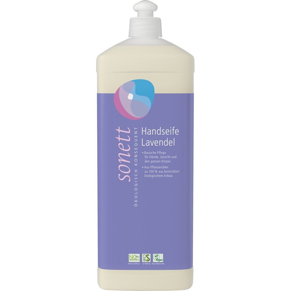 Sapun lichid cu lavanda bio pentru maini si corp in sticla de reumplere Sonett este un sapun lichid blând, îngrijitor, proaspat parfumat, cu parfumul calmant si clar al lavandei pure. Ambalat in sticla de 1 litru potrivit ca rezerva de reumplere la dozatorul de 300ml.