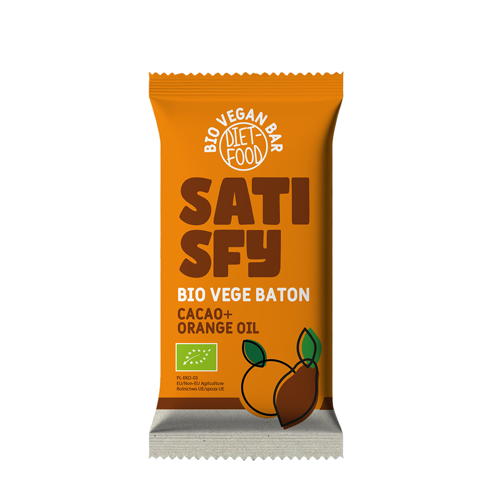SATISFY – Baton vegan bio cu ciocolata si portocale 35g